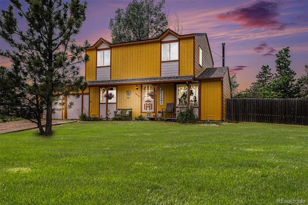 Welcome to the perfect mix of country living with quick access to shops and dining, only minutes away. This 3 bedroom, 2 bath home on over an acre of land provides the ability to relax or play. Upstairs you will find all 3 bedrooms, a huge primary suite with large walk-in closet and a new custom shower. On the main floor you have 2 living areas, kitchen, formal dining area, powder bath, and large laundry room with ample counter space. The oversized 2-car garage provides plenty of room for your vehicles, bikes, toys and more! Walk outside to your expansive deck where you can enjoy Colorado weather year-round or end the day soaking in your hot tub under the stars! NEW ROOF, PAINT AND SIDING on the 2nd story. Owners are allowed to have horses (2), goats, chickens (farm fresh eggs!), etc. There are currently materials for a new 24x40x12 outbuilding on the property that needs to be assembled/erected but would be the perfect addition for your workshop, garage, or whatever you can think of. If buyer wants the accessory building the price will be increased by $15K. Buyer to assemble. Original cost was $32K. You won't find a better option anywhere around that gives you BOTH a beautiful home and LAND! There will not be an open house. Please call the listing agent for more details or to schedule a showing.
